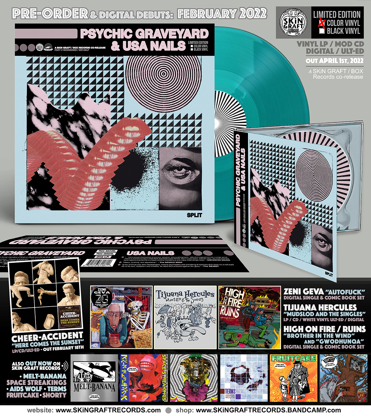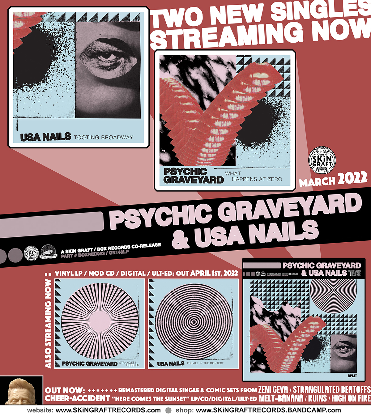 The “in-name only” United States and Kingdom’s divisions are more raw and splintered than ever before. And it's from this place of division that the USA’s PSYCHIC GRAVEYARD and SKiN GRAFT Records have joined with the UK’s USA NAILS and BOX Records to form “Split”.